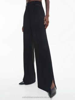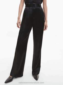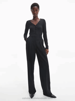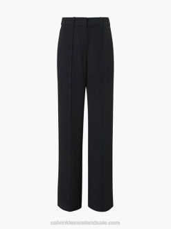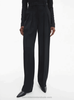 F64Z2063 Black Women Calvin Klein Wool Twill Pleated Trousers