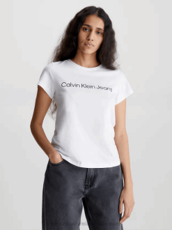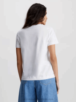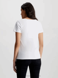 F64Z1918 Bright White Women Calvin Klein Slim V-Neck T-shirt