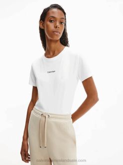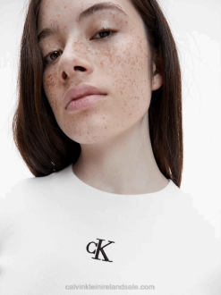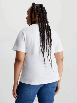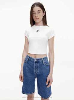 F64Z2389 Bright White Women Calvin Klein Cropped Logo T-shirt