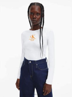 F64Z2439 Bright White Women Calvin Klein Long Sleeve Bodysuit