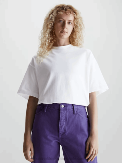 F64Z2512 Bright White Women Calvin Klein Cropped Gym T-shirt