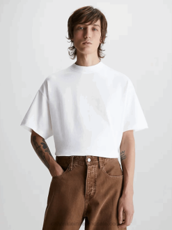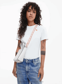 F64Z2486 Bright White Women Calvin Klein Slim Monogram T-shirt