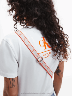F64Z2526 Bright White Women Calvin Klein Cropped Gym T-shirt