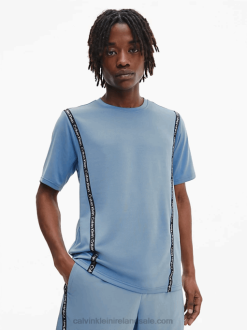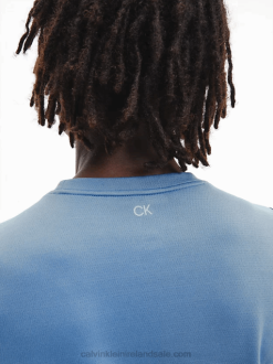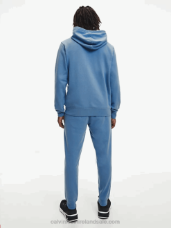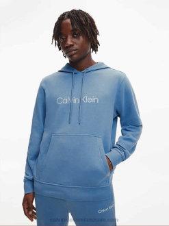 F64Z4834 Copen Blue Men Calvin Klein Cotton Terry Logo Hoodie