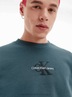 F64Z4868 Dark Seaweed Men Calvin Klein Organic Cotton Monogram Sweatshirt
