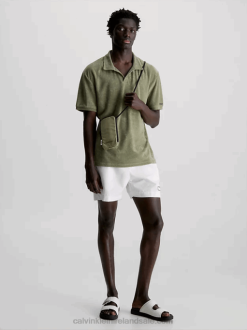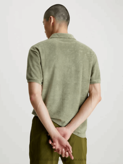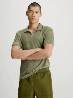 F64Z3968 Delta Green Men Calvin Klein Ribbed Logo Polo Shirt