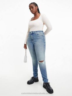 F64Z2220 Eggshell/Coral Orange Women Calvin Klein Oversized Logo Tape Hoodie