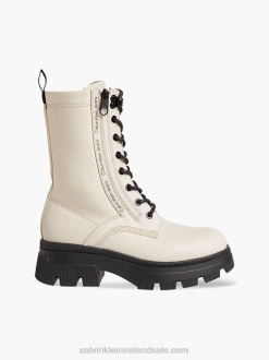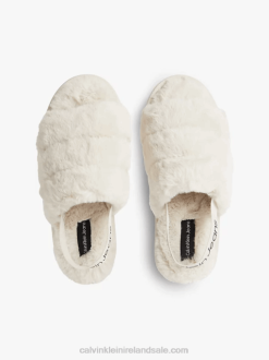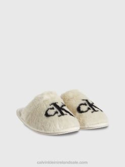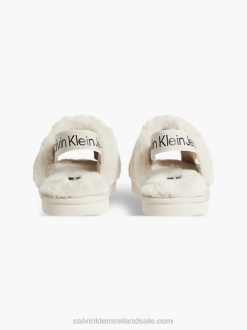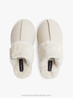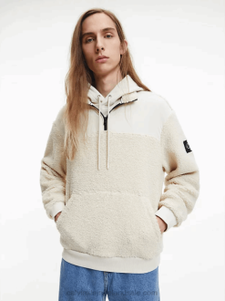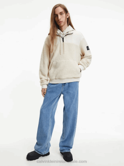 F64Z4849 Eggshell Men Calvin Klein Relaxed Sherpa Zip Neck Jumper