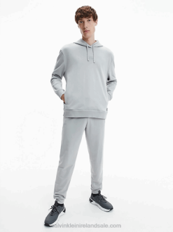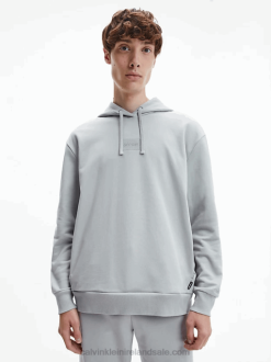 F64Z4965 Grey Fog Men Calvin Klein Recycled Cotton Logo Hoodie