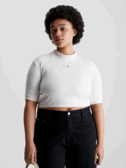 F64Z2051 Ivory Women Calvin Klein Slim Ribbed Short Sleeve Top