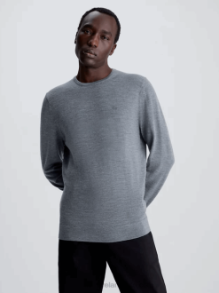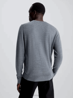 F64Z4679 Mid Grey Heather Men Calvin Klein Merino Wool Jumper
