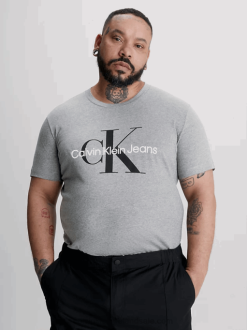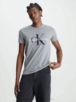 F64Z4705 Mid Grey Heather Men Calvin Klein Slim Monogram T-shirt