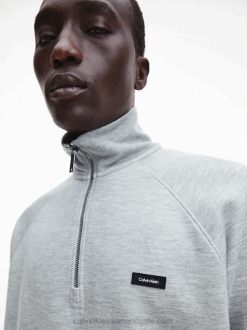 F64Z4722 Mid Grey Heather Men Calvin Klein Relaxed High Neck Zip Sweatshirt