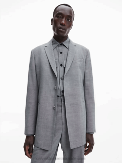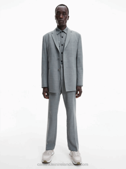 F64Z4752 Moon Mist Men Calvin Klein Two Tone Wool Blend Trousers