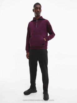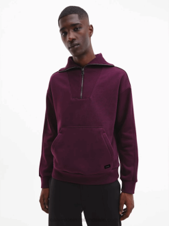 F64Z4776 Passion Plum Men Calvin Klein Relaxed Zip Neck Fleece Sweatshirt