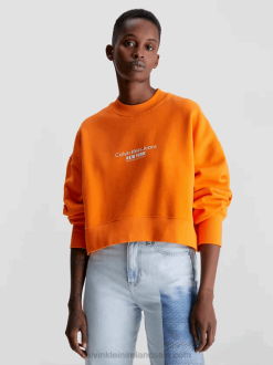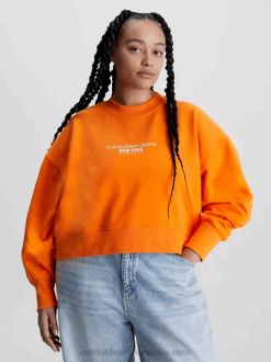 F64Z1879 Vibrant Orange Women Calvin Klein Cropped Embroidered Sweatshirt