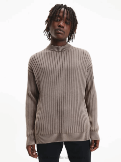 F64Z4518 Warm Toffee Men Calvin Klein Relaxed Combed Cotton Jumper