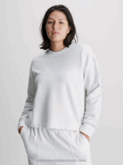 F64Z2518 White Suede Women Calvin Klein Cotton Terry Logo Sweatshirt