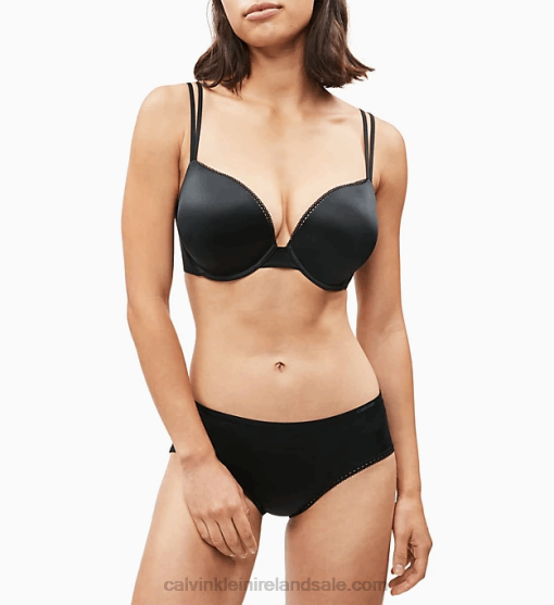 F64Z1162 Black Women Calvin Klein Plunge Push-Up Bra