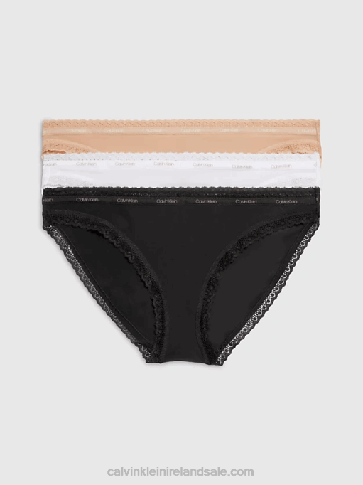 F64Z1266 Black/White/Honey Almond Women Calvin Klein 3 Pack Bikini Briefs