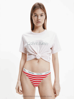 F64Z1305 Rainer Stripe Pink Shell Women Calvin Klein Thong