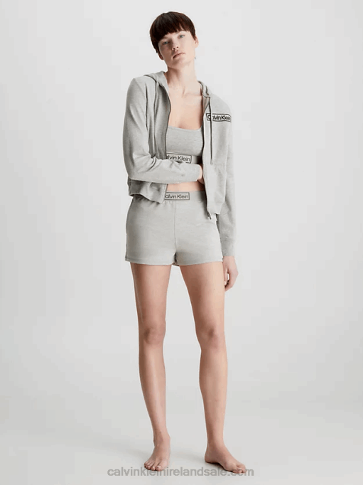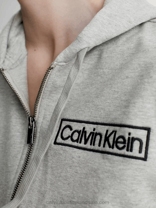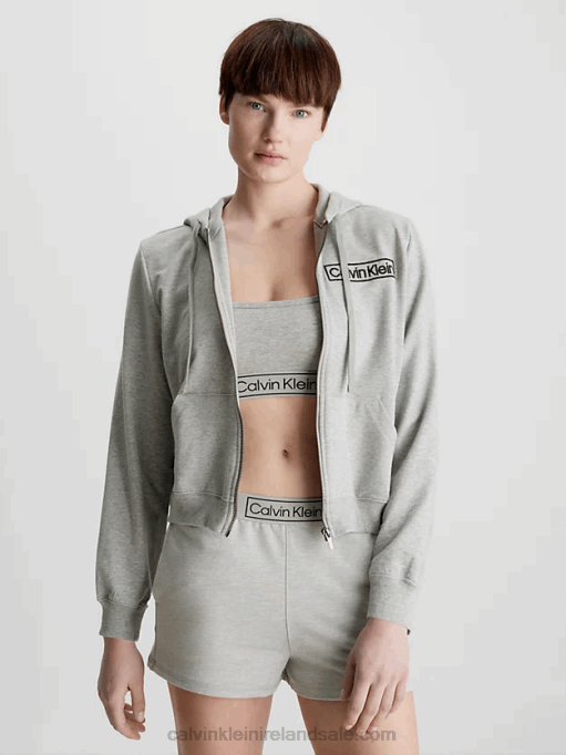 F64Z1359 Grey Heather Women Calvin Klein Lounge Hoodie