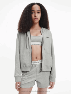 F64Z1269 Grey Heather Women Calvin Klein Lounge Zip Up Hoodie