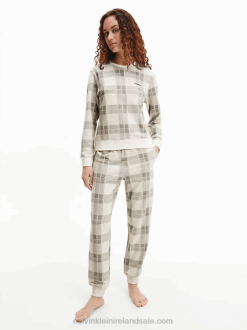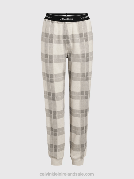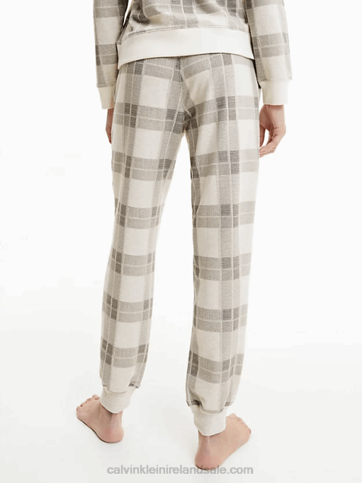 F64Z1380 Textured Plaid Oatmeal Women Calvin Klein Pyjama Pants