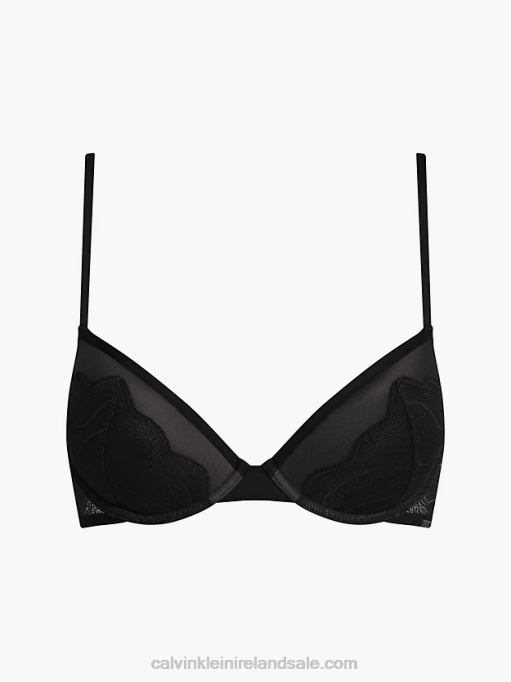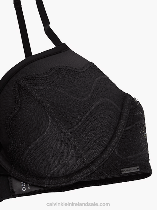 Intricate wavy lace covers the cups of this demi bra, featuring soft foam padding for lift and support.