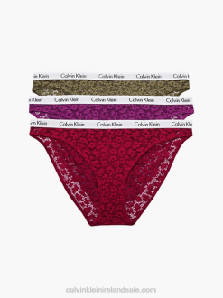 F64Z1578 Intense Plum/Red Carpet/Olive Women Calvin Klein 3 Pack Bikini Briefs