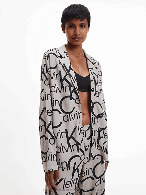 F64Z1603 Large Block Logo Winter Linen Women Calvin Klein Pyjama Top