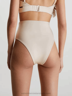 F64Z164 Stony Beige Women Calvin Klein High Waisted Bikini Bottoms