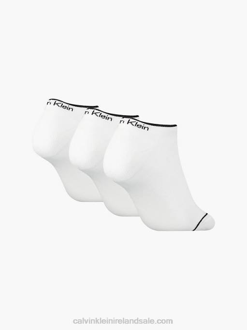 F64Z1726 White Women Calvin Klein 3 Pack Ankle Socks