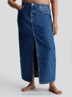 F64Z57 Denim Medium Women Calvin Klein High Rise Denim Maxi Skirt