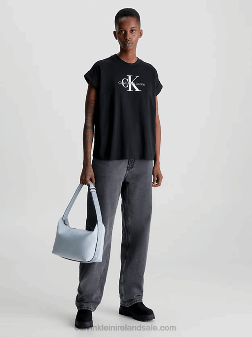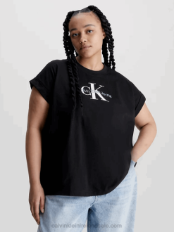 F64Z48 Black Women Calvin Klein Plus Size Long T-shirt Dress