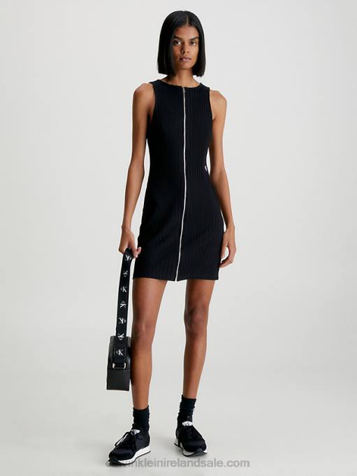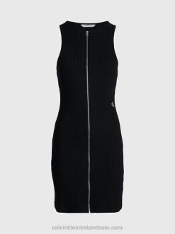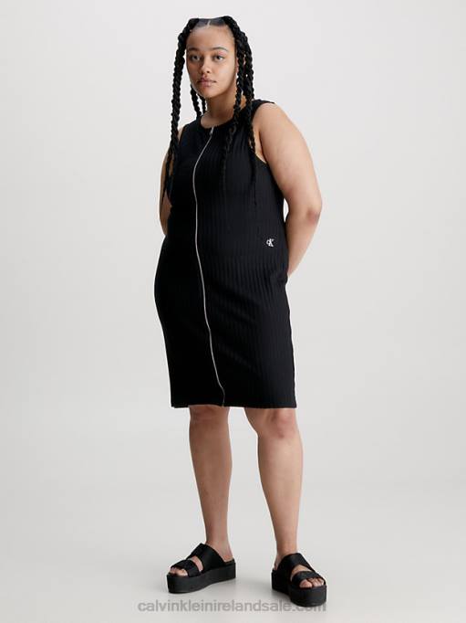 F64Z47 Black Women Calvin Klein Plus Size Ribbed Monogram Tank Dress