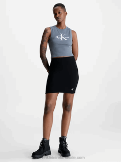 F64Z48 Black Women Calvin Klein Plus Size Long T-shirt Dress