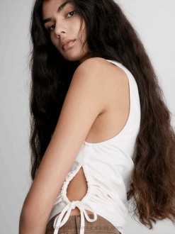 F64Z73 Black Women Calvin Klein Seersucker Stretch Cut Out Top