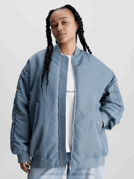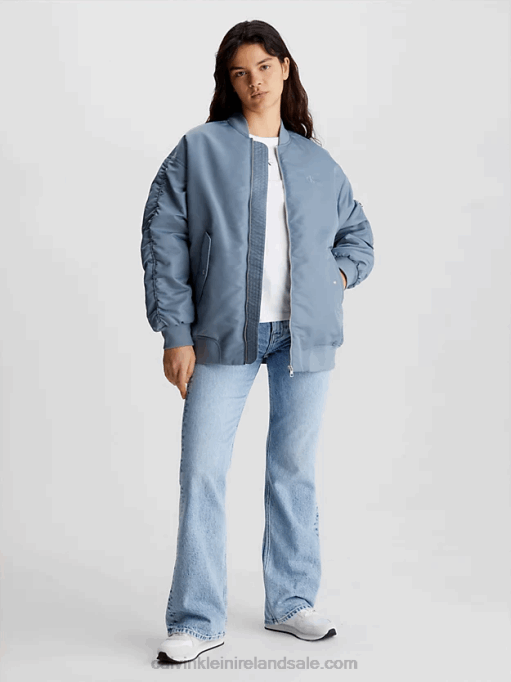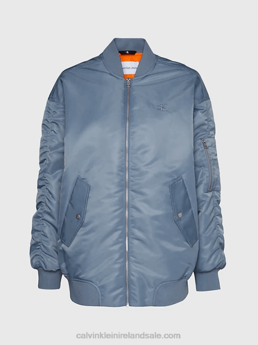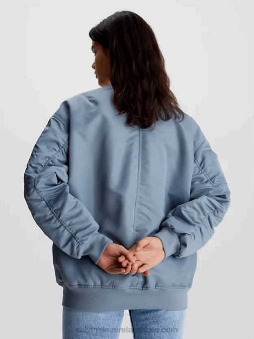 F64Z1775 Overcast Grey Women Calvin Klein Oversized Nylon Sateen Bomber Jacket