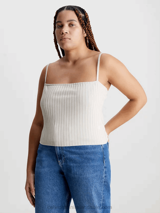 F64Z1778 Classic Beige Women Calvin Klein Ribbed Jersey Cami Top