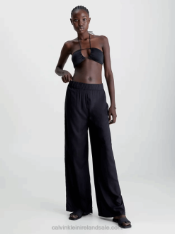 F64Z1781 Pvh Black Women Calvin Klein Wide Leg Beach Pants