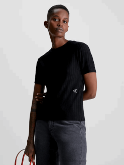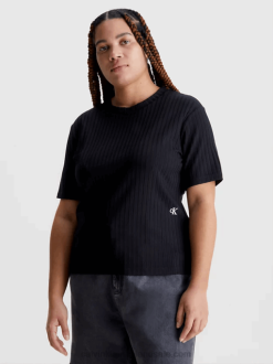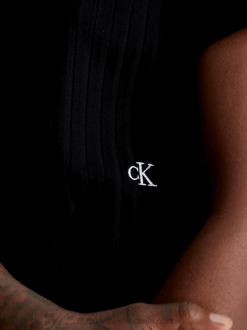 F64Z47 Black Women Calvin Klein Plus Size Ribbed Monogram Tank Dress