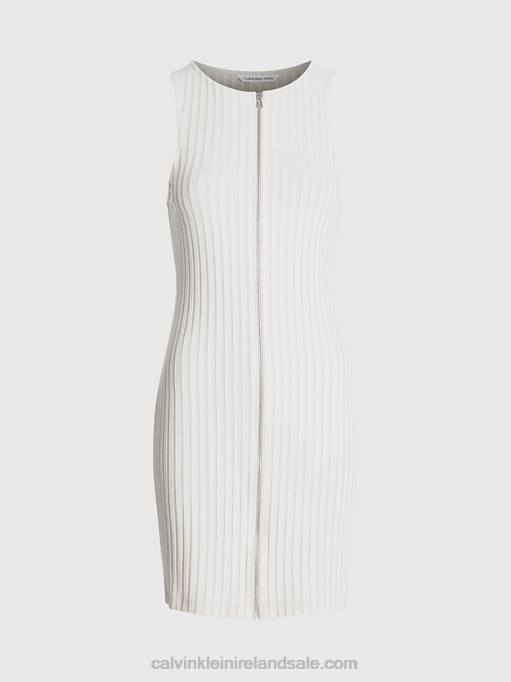 F64Z1789 Classic Beige Women Calvin Klein Ribbed Zip-Through Mini Dress