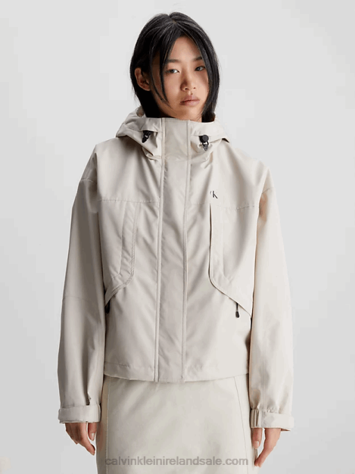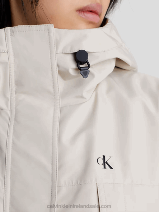 F64Z1798 Classic Beige Women Calvin Klein Oversized Waterproof Jacket