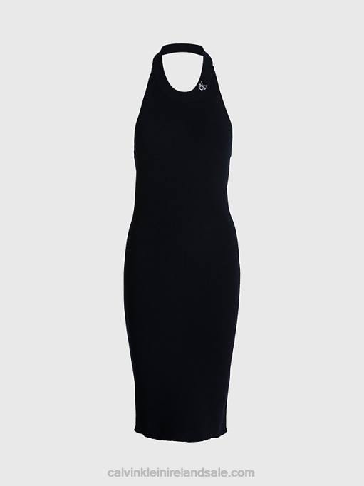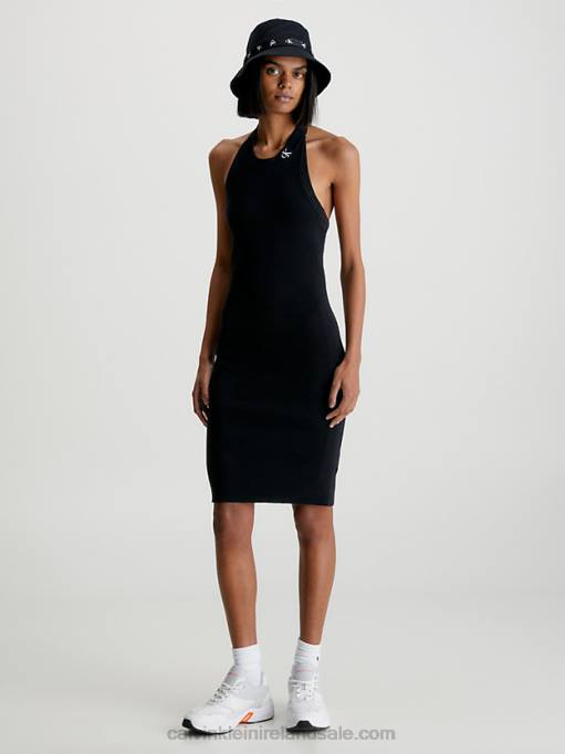 F64Z47 Black Women Calvin Klein Plus Size Ribbed Monogram Tank Dress