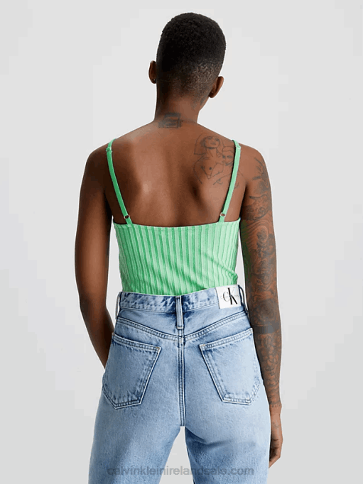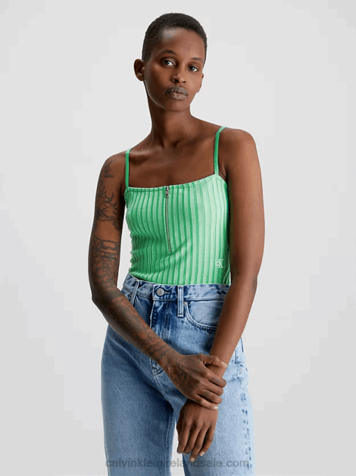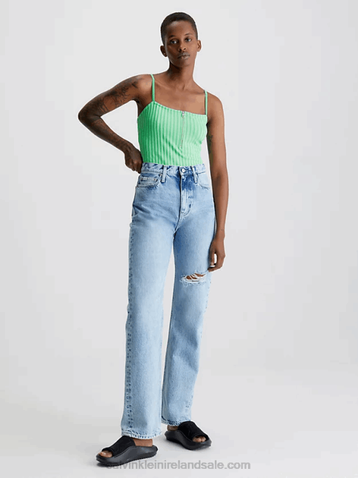 F64Z27 Denim Medium Women Calvin Klein Denim Zip Up Bralette Top