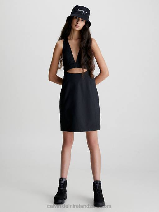F64Z1811 Black Women Calvin Klein Open Back Utility Dress