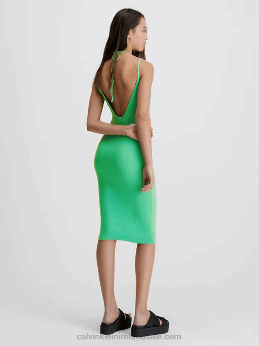 F64Z654 Shitake Women Calvin Klein Waffle Cotton Halter Neck Dress
