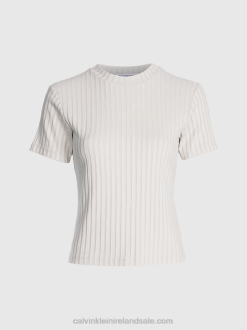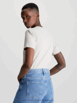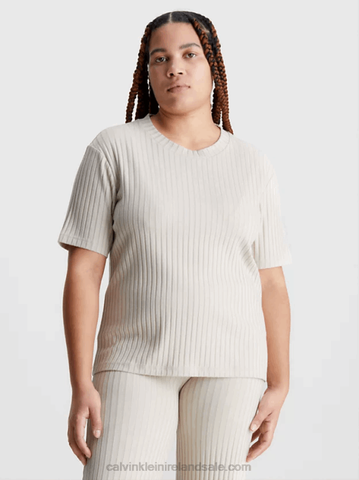 F64Z322 Vintage Ivory Women Calvin Klein Plus Size Logo T-shirt