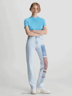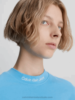 F64Z1860 Blue Crush Women Calvin Klein Logo Collar T-shirt